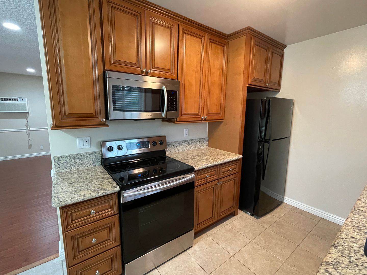 Large 1 bedroom upper Renovated apartment. Beautiful Custom cabinetry in the Kitchen with granite counter tops, recessed lighting, and a combination of Ceramic Tile and Laminate wood floors. The bath is newer with matching custom cabinetry, and the unit is also appointed with dual pane windows and sliding door. This is a very nice and spacious unit with a dining area and balcony. Building boasts a sparkling pool, laundry facilities, gated parking area and is within the Temple City School District.
